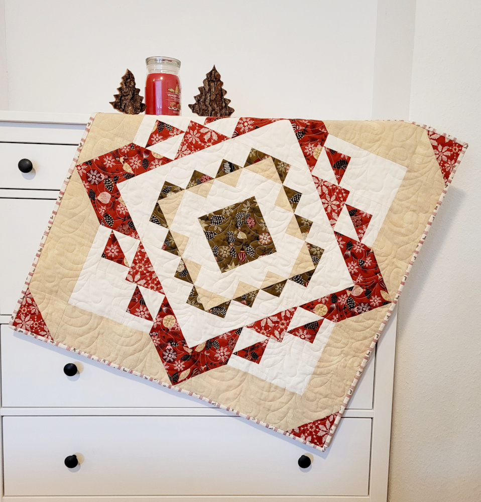 Ein wenig Vintage, ein wenig zeitlos, kombiniert mit modernen Beistoffen - so präsentiert sich diese weihnachtliche Mitteldecke in der beliebten Größe von ca. 80 x 80cm.