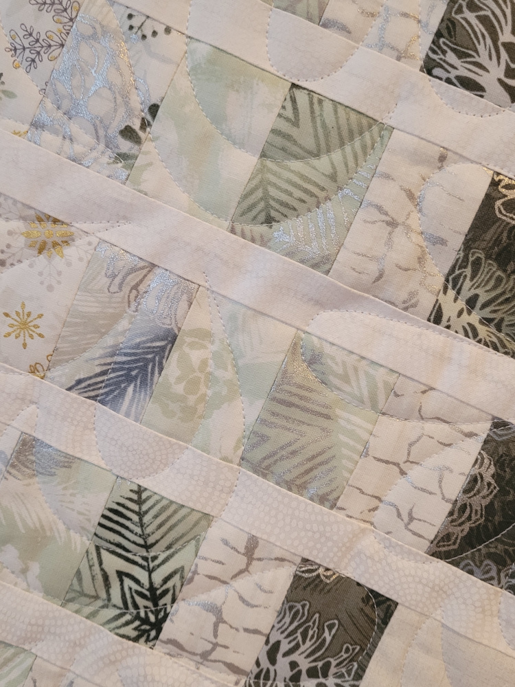 Dieser Läufer ist perfekt für Ihre winterliche Tischdekoration. Kühle Pastelltöne in Grün und Mint, kombiniert mit einem kräftigeren Grünton und dezenten silbernen Akzenten ergeben ein edles, zeitloses und gleichzeitig modernes Design.